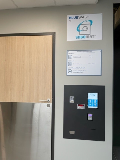 La nouvelle station service d’Andrézieux-Bouthéon accueille une laverie pour que tous les gens de passage s’y sentent bien. Matériel installé par notre partenaire SABOMAT.